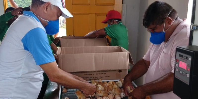 Mais uma etapa do programa de geração de renda e produção de proteína de origem animal no segmento da avicultura foi realizada no município de Maués, na primeira quinzena de maio, com o auxílio técnico do Instituto de Desenvolvimento Agropecuário e Florestal Sustentável do Estado do Amazonas (Idam) e apoio da Prefeitura Municipal de Maués, através do secretário municipal de produção rural (Sepror), Luiz Canindé. Nesta etapa, foi monitorado o nascimento de pintainhos (pintos recém-nascidos; filhotes de galinha ainda sem a plumagem).