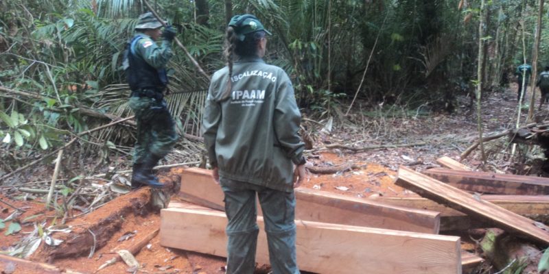 Ipaam realiza operação para combater extração de madeira ilegal em RDS