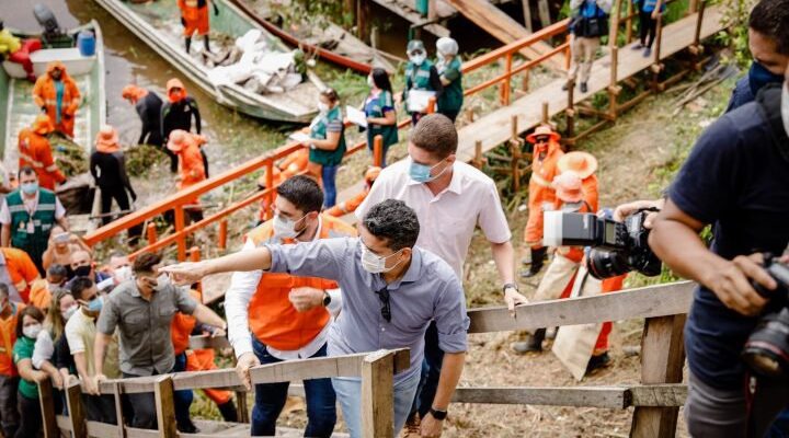 Para conhecer a realidade das famílias que moram na comunidade, David Almeida e o vice-prefeito e secretário municipal de Infraestrutura, Marcos Rotta, chegaram ao local de lancha e caminharam pelas pontes, já construídas pela Casa Militar, para conversarem com a população.