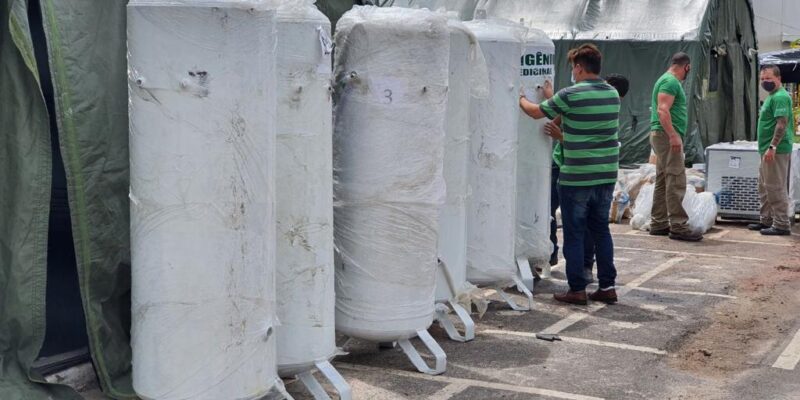 Os seis tanques que irão armazenar o oxigênio, o compressor e usina já estão no local. Ao todo, sete usinas de oxigênio foram requisitadas administrativamente pelo Ministério da Saúde e encaminhadas para a rede estadual de saúde no último domingo (17/01).