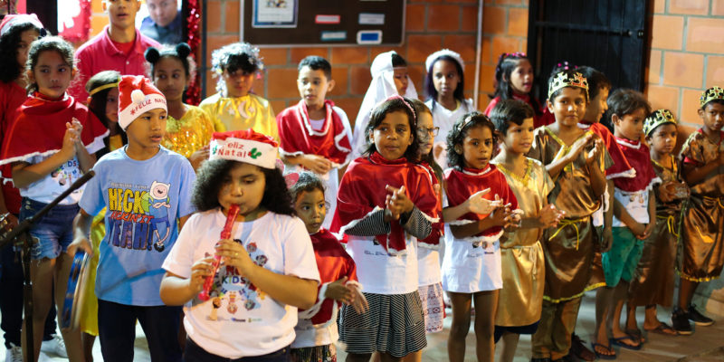 Música, árvore de Natal, bingo, encenação teatral e um presépio vivo infantil marcaram a noite de sábado (14) com as comemorações natalinas no Parque Residencial Mestre Chico II, localizado no bairro da Praça 14, zona sul. O evento faz parte da programação de Natal nos residenciais do Programa Social e Ambiental dos Igarapés de Manaus (Prosamim).