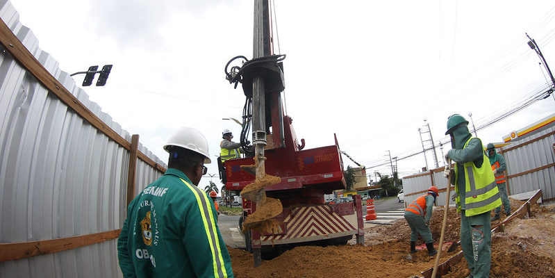 Em paralelo à instalação de pilares, vias no entorno da obra também são beneficiadas com ações de infraestrutura. No conjunto Mundo Novo, nove ruas já receberam ações de fresagem e aplicação de binder, que é uma camada mais resistente de asfalto. Já no bairro Manoa, os serviços foram executados em cinco vias e outras quatro recebem novo asfalto. Essas ruas são a base para começar o sistema viário do complexo viário do Manoa.