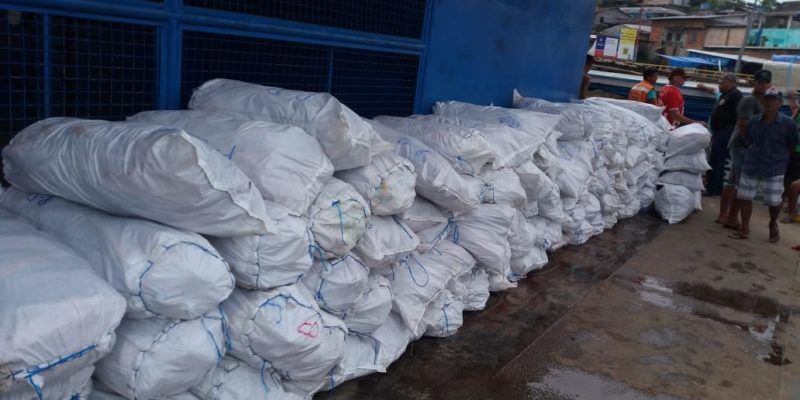 Durante a revista na embarcação “Leydy Layze”, foram encontradas 7,6 toneladas de piracatinga em 127 sacas, além de 5,9 quilos de pirarucu salgado em 80 sacas.