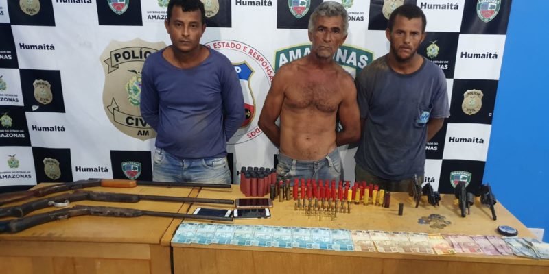 Nesta terça-feira (10/12), uma ação integrada da Secretaria de Segurança Pública do Amazonas (SSP-AM) com apoio das Polícias Civil e Militar resultou na prisão de três homens suspeitos de vários crimes, incluindo ameaça, grilagem de terra e homicídios no município de Humaitá (a 590 quilômetros de Manaus). Com o trio, os policiais encontraram sete armas de fogo, incluindo três de grosso calibre.