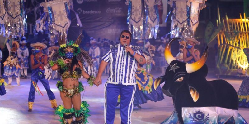 Espetáculo – O primeiro a entrar na arena foi o Boi Caprichoso, que iniciou a apresentação com a toada “Sentimentos”. A música integra o CD de 2020 e foi composta pela professora parintinense e sócia do Caprichoso, Thereza Cristina, que morreu vítima da Covid-19 no último dia 22 de junho.