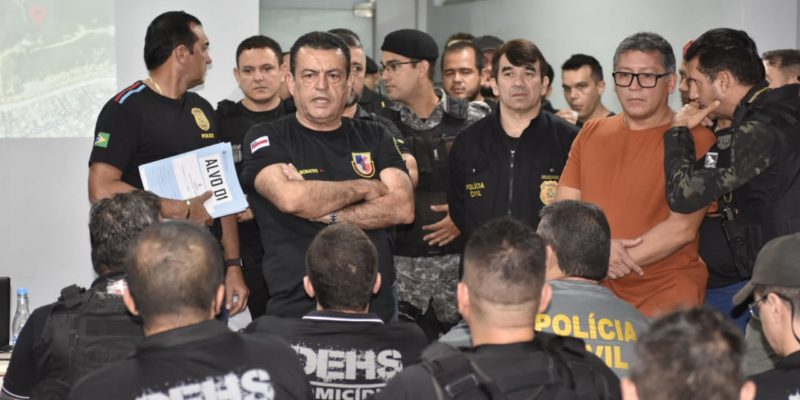 O secretário de segurança, coronel Louismar Bonates, acompanha o andamento dos trabalhos ao lado do delegado-geral adjunto, Orlando Amaral; do delegado titular da DEHS, Paulo Martins; e do comandante de Policiamento Especializado da PM, coronel Bruno Azevedo. Mais de 150 policiais civis e militares estão envolvidos na ação e começaram a cumprir os mandados nas primeiras horas da manhã de hoje.