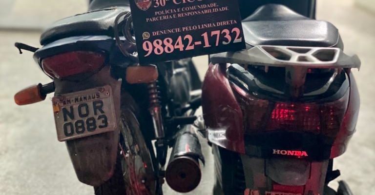 Um homem de 18 anos foi preso na avenida Max Teixeira, bairro Cidade Nova, zona norte de Manaus, por policiais da 6ª Cicom. Com ele foi encontrada uma motocicleta vermelha com restrição de roubo. O infrator foi encaminhado ao 6º Distrito Integrado de Polícia (DIP).