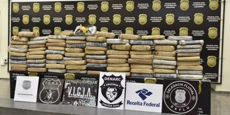 De acordo com o delegado, a embarcação foi abordada no rio Solimões, nas proximidades de Manacapuru (município distante 68 quilômetros em linha reta da capital). No momento da abordagem, as equipes iniciaram revista e em um bote de alumínio que estava no convés do barco, o cão ‘Odin’, da Receita Federal, detectou substâncias entorpecentes no bote.