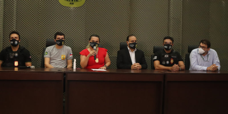 O resultado da ação foi apresentado durante coletiva de imprensa, realizada às 14h30 desta quinta, no prédio da Delegacia Geral, no bairro Dom Pedro, centro-oeste de Manaus, e contou com a presença da delegada-geral da instituição, Emília Ferraz; do delegado-geral adjunto, Tarson Yuri Soares; do delegado Alessandro Albino, diretor do Departamento de Polícia Metropolitana (DPM); além dos delegados Aldeney Goes e Leonardo Marinho, respectivamente titular e ajunto da DERFD, e do assessor jurídico da FCecon, Ricardo Monteiro.