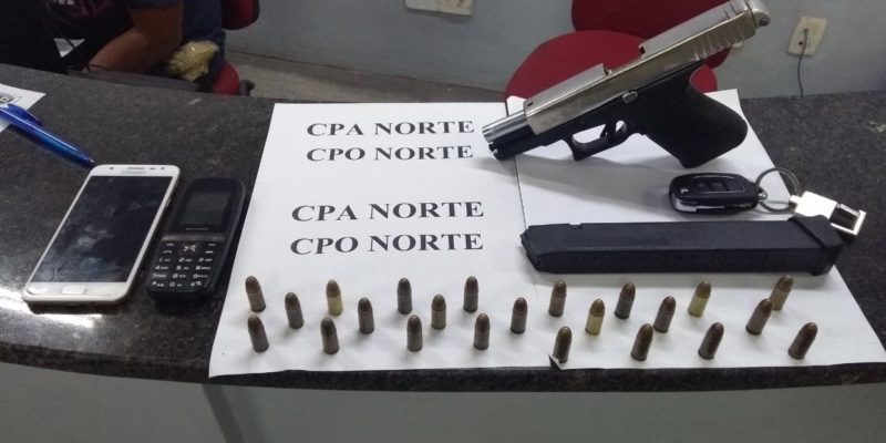 Os policiais iniciaram as buscas e conseguiram visualizar o veículo na avenida João Câmara. Foi feito o acompanhamento e abordagem e, durante revista pessoal no condutor e passageiros, e no interior do veículo, foi encontrada uma pistola calibre 9mm.