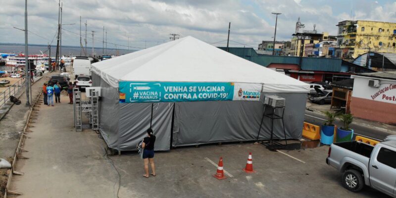 Começou a funcionar neste sábado, 6/11, um novo ponto de vacinação contra a Covid-19, dessa vez na orla da avenida Lourenço Braga, Centro, para atender permissionários das feiras Manaus Moderna, da Banana, e do Mercado Municipal Adolpho Lisboa, além da população geral, de segunda a sexta-feira, das 9h às 16h. A instalação da Prefeitura de Manaus, faz parte do projeto “Orla mais segura”, e será coordenada pela Secretaria Municipal de Agricultura, Abastecimento, Centro e Comércio Informal (Semacc) e Secretaria Municipal de Saúde (Semsa).