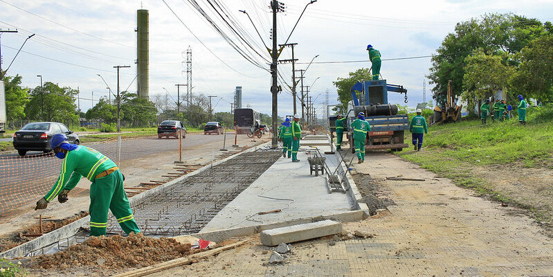 O prefeito acompanhou o andamento dos trabalhos em execução nas vias Mário Andreazza/BR-319 e rua Ministro João Gonçalves, nos trechos que estão recebendo fresagem, aplicação de biden (primeira camada de asfalto) e da camada definitiva. O outro lado da pista, no sentido Ceasa-Bola da Suframa, em seus seis quilômetros de extensão, já está concluído. No local, também está sendo aplicado asfalto rígido (concreto) nas paradas de ônibus. Na rotatória da avenida Açaí com a Ministro João Gonçalves, onde é intensa a manobra de veículos pesados, é aplicado pavimento rígido, após remoção e reforço de base.