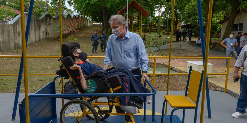 A inclusão de pessoas com deficiência, especialmente as crianças, é uma das políticas públicas mais buscadas pela gestão do prefeito de Manaus, Arthur Virgílio Neto, e para que isso aconteça é fundamental oferecer ambientes adaptados às necessidades do público infantil. O parque Cidade da Criança é o primeiro público da cidade a atender essa necessidade e o novo espaço dedicado foi inaugurado nesta quarta-feira, 14/10, pelo prefeito e pela presidente do Fundo Manaus Solidária, a primeira-dama Elisabeth Valeiko Ribeiro.