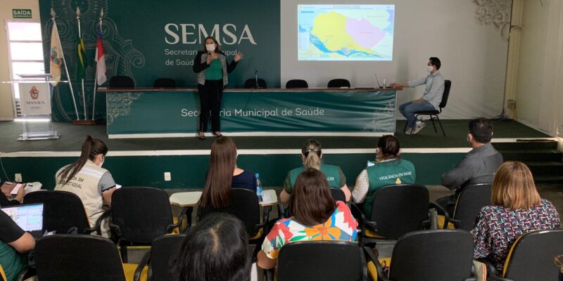 As ações adotadas pela Prefeitura de Manaus, por meio da Secretaria Municipal de Saúde (Semsa), no enfrentamento da pandemia de Covid-19 na capital amazonense foram tema de um novo evento com a participação de representantes da Organização Pan-Americana de Saúde (Opas), da Secretaria de Estado de Saúde (SES-AM) e da Fundação de Vigilância em Saúde (FVS/AM), realizado nesta quinta-feira, 26/11, no auditório da Semsa, localizada no bairro Adrianópolis, zona Centro-Sul de Manaus.