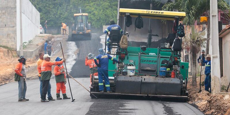 A Prefeitura de Manaus trabalha nesta terça-feira, 5/10, na intensificação das obras de infraestrutura no conjunto Parque das Laranjeiras, bairro Flores, zona Centro-Sul da capital. A área, que era toda em solo natural, já recebeu implantação de aproximadamente 400 metros de drenagens profundas, terraplanagem, e agora está na fase da pavimentação asfáltica.