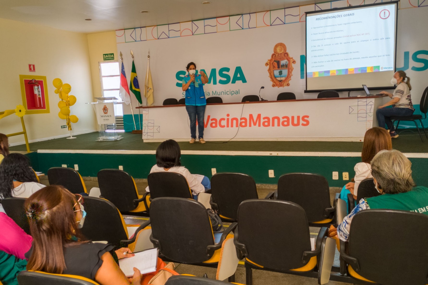 As orientações sobre a campanha foram repassadas aos gerentes dos Distritos de Saúde, chefes dos Núcleos de Imunização, das Divisões de Atenção à Saúde e de Vigilância em Saúde dos Disas, área técnica do Departamento de Vigilância Ambiental e Epidemiológica (Devae), Departamentos de Redes de Atenção (DRA), de Atenção Primária (DAP) e de Informação, Controle, Avaliação e Regulação (Dicar), durante reunião no auditório da Semsa, na última terça-feira, 21.