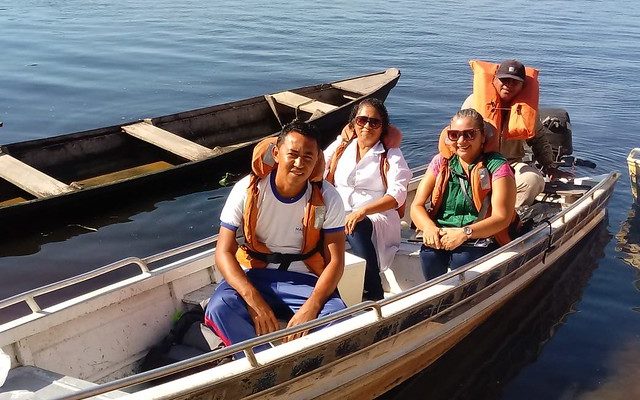 Às quartas-feiras, dois Agentes Comunitários de Saúde (ACSs), que também têm uma longa história na unidade por serem moradores do local – Maria Raimunda Matos e Raimundo Cavalcante dos Santos –, juntamente com a enfermeira da UBS, Rilzabete Souza, embarcam na lancha usada pelo setor de Controle de Endemias para percorrer as comunidades e levar medicamentos aos ribeirinhos.