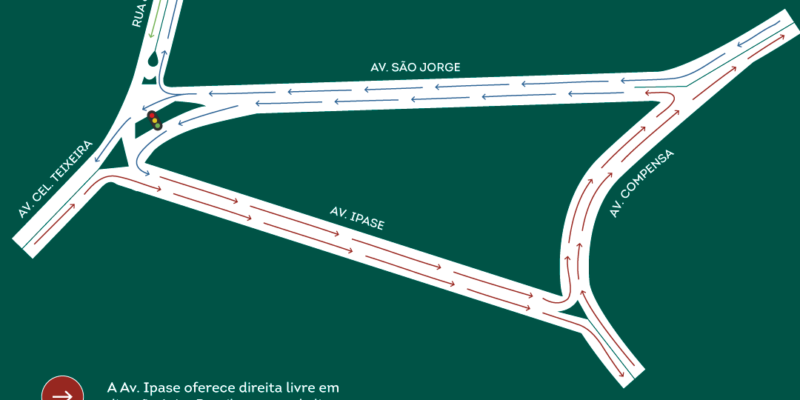 Com as mudanças, a avenida Ipase oferece direita livre em direção à avenida Brasil e esquerda livre para a avenida São Jorge.
