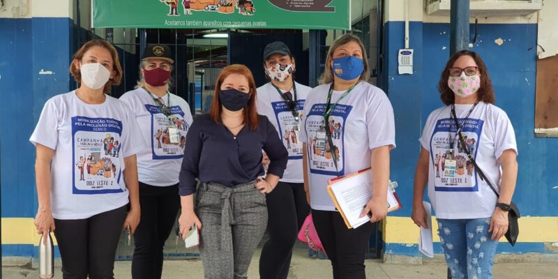Para resgatar os alunos que não estão acompanhando o projeto “Aula em Casa”, a Prefeitura de Manaus realizou nesta quarta-feira, 12/8, a campanha de mobilização “Todos pela Inclusão Digital”, que faz parte do projeto “Nem um a Menos: Solidariedade que Acessa a Educação”, da Secretaria Municipal de Educação (Semed). Neste primeiro dia, a equipe da escola municipal Jorge Rezende Sobrinho, coordenada pela Divisão Distrital Zonal (DDZ) Leste 1, percorreu as ruas do bairro Jorge Teixeira, na zona Leste, em busca de alunos infrequentes.