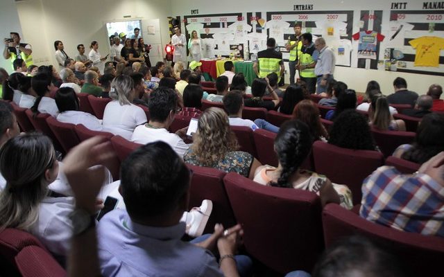 Agentes de trânsito da Prefeitura de Manaus reuniram-se na manhã desta segunda-feira, 23/9, para comemorar o Dia Nacional do Agente de Trânsito e lembrar os 20 anos de municipalização do trânsito na capital. O evento, coordenado pelo Instituto Municipal de Mobilidade Urbana (IMMU), faz parte da programação da Semana Nacional de Trânsito.