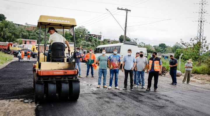 Na sequência, as fiscalizações continuaram na rua Igarapé Sumaúma, bairro Colônia Santo Antônio, zona Norte, onde as equipes realizam mais um mutirão de obras. A via, que estava com um trecho intrafegável, recebe a recomposição total da base com pedra rachão, e assim que estiver nivelada, imediatamente receberá a camada asfáltica.