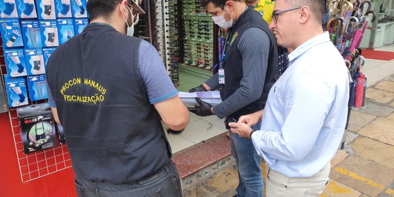 Somente em uma loja física localizada na avenida Eduardo Ribeiro, a equipe do Procon Manaus apreendeu 17 produtos em embalagens sem informações, além de quatro pacotes com 24 unidades de um produto de procedência duvidosa. O local foi autuado de acordo com o artigo 18 do Código de Defesa do Consumidor (CDC) combinado com os artigos 13, 63 e 63 do Decreto 2.181/1997, que dispõe sobre a organização do Sistema Nacional de Defesa do Consumidor (SNDC).