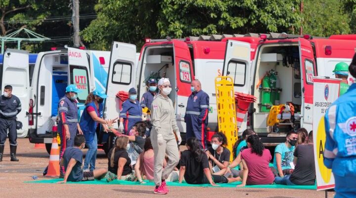 Equipes do Serviço de Atendimento Móvel de Urgência (Samu), da Prefeitura de Manaus, participaram, na manhã deste sábado, 27/11, na área de concentração do Centro de Convenções de Manaus, o “sambódromo”, na zona Centro-Oeste, de um exercício simulado de acidente com múltiplas vítimas. A atividade reuniu aproximadamente 300 pessoas, com coordenação da Força Nacional do Sistema Único de Saúde (SUS), além de ser a parte prática da capacitação “Resposta a acidente com múltiplas vítimas”, realizada durante dois dias em Manaus. A simulação teve por objetivo, no caso de um acidente de grandes proporções, que o tempo de atendimento seja o mais breve possível.