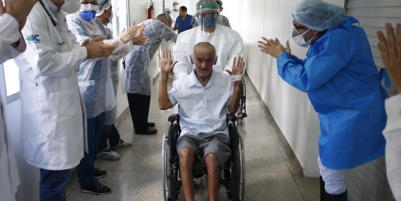 Uma cena emocionante. Quatro idosos institucionalizados da Fundação Municipal de Apoio ao Idoso Doutor Thomas (FDT), que testaram positivo para a Covid-19 e estavam sendo atendidos por uma equipe multidisciplinar da Prefeitura de Manaus, receberam alta médica na tarde desta terça-feira, 21/4. Ao som de muitos aplausos da equipe médica e com sorriso nos rostos, eles foram transferidos da unidade de tratamento semi-intensivo, montada nas dependências da Fundação pelo grupo Samel, para os pavilhões de alojamentos.