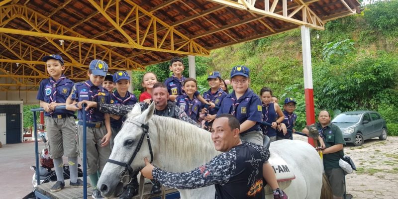 O Regimento de Policiamento Montado (RPMON) da Polícia Militar, localizado no bairro Dom Pedro I, zona centro-oeste, recebeu na manhã do sábado (26/10) a visita de jovens do Grupo de Crisma da Igreja Católica Sagrada Família e dos Adolescentes Lobinhos do Colégio La Salle. Comemorando os 350 anos de fundação da capital amazonense, os jovens visitantes puderam desfrutar, nas dependências da unidade militar, de uma manhã de entretenimento e lazer, ao mesmo tempo em que puderam conhecer as várias ferramentas de trabalho do RPMON em favor da sociedade manauara.