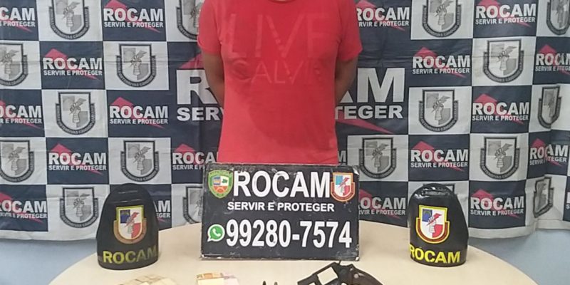 Após denúncia anônima, policiais militares das Rondas Ostensivas Cândido Mariano (Rocam) prenderam um homem com uma arma de fogo, dinheiro, projeteis balísticos e dois dispositivos “Chapolin”, utilizados para furtar veículos. A prisão ocorreu na noite desta quarta-feira (09/10), no bairro Jorge Teixeira, zona leste da capital amazonense.