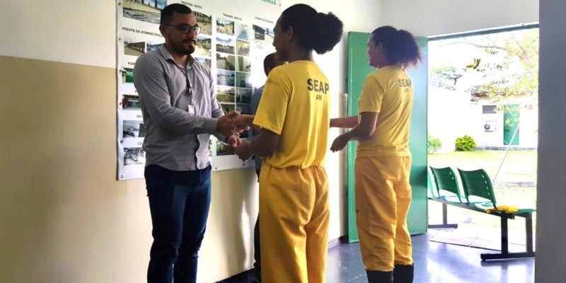 Ambos trabalham na conservação e limpeza da unidade prisional, integrando o projeto de ressocialização “Trabalhando a Liberdade”, que é realizado em parceria com a empresa de cogestão Reviver Administração Prisional Privada e prevê a remição da pena pelo trabalho não remunerado. Eles manifestaram a vontade de adotar o nome social durante atendimento jurídico da Defensoria Pública do Estado (DPE) realizado no Compaj.
