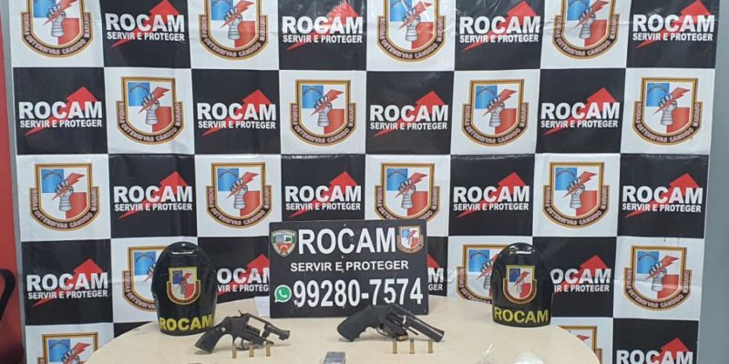 Policiais militares das Rondas Ostensivas Cândido Mariano (Rocam) prenderam, em flagrante, um homem de 33 anos na rua Jatuarana, bairro Jorge Teixeira, zona leste. Com o suspeito foram apreendidos dois revólveres calibre 38, seis munições intactas, 43 porções de entorpecentes e uma balança de precisão.