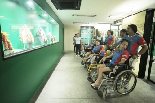 Desde às 9h, 25 pessoas assistidas pelo Abrigo Moacyr Alves (AMA) e pela Associação dos Deficientes Intelectuais do Amazonas (Adiam) participaram de atividades no CCPA, conheceram o Museu do Homem do Norte, bem como algumas tribos indígenas e seus costumes.