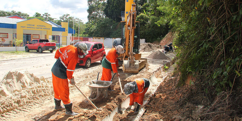A Prefeitura de Manaus, por meio da Secretaria Municipal de Infraestrutura (Seminf), iniciou nesta terça-feira, 27/4, os serviços básicos de infraestrutura, na rua 36, no núcleo 3, do bairro Cidade Nova, zona Norte, onde uma iminente erosão tem gerado inúmeros transtornos aos moradores do entorno da pista, assim como o bom funcionamento da creche municipal Professora Maristela Martins, devido o alagamento ocasionado pelas fortes chuvas.