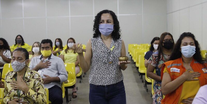 “O cuidado com a saúde mental através da meditação”. Esse foi o tema da oficina que integra as atividades em alusão ao Setembro Amarelo da Prefeitura de Manaus, realizadas pelo programa de Qualidade de Vida no Serviço Público Municipal, na manhã desta segunda-feira, 14/9, no auditório da Casa Militar, no bairro Compensa, zona Oeste. O encontro contou com um número limitado de servidores públicos municipais, reforçando medidas de prevenção à Covid-19.