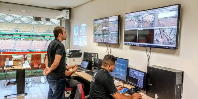 As câmeras de monitoramento no entorno, que dão visibilidade em todo o perímetro externo, além das câmeras que ficam dentro da arena, serão integradas e monitoradas pela base do CICC-L.