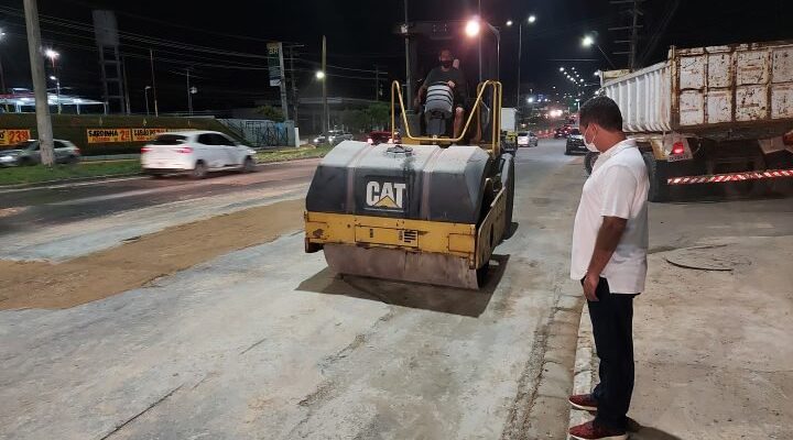 De acordo com o prefeito David Almeida, que acompanhou os trabalhos, a pista havia sido liberada para fluxo com uma camada de asfalto provisória para que a base se compactasse de maneira adequada e agora a revitalização é concluída com a aplicação de 40 toneladas de massa asfáltica definitiva.