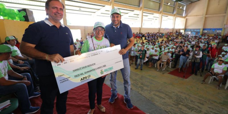 O governador do Amazonas, Wilson Lima, realizou, nesta segunda-feira (25/11), o pagamento da subvenção econômica da juta e malva para mais de 400 produtores rurais de 12 municípios do Estado. A ação ocorreu no município de Codajás (distante 240 quilômetros de Manaus) e deve injetar R$ 2.193.950,48 na economia, referentes às safras de 2015/2016 até 2018/2019. No município, o governador também anunciou o reajuste no preço da subvenção para os próximos três anos, além de obras nas áreas de educação, saneamento básico, infraestrutura e de produção rural.