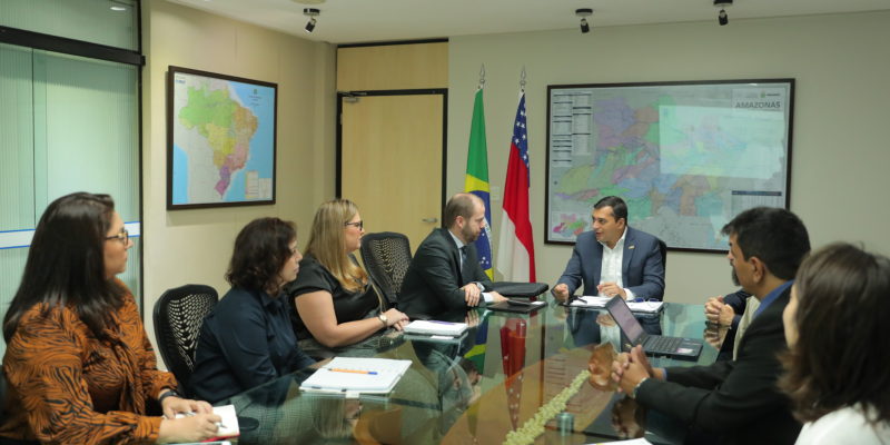 O governador Wilson Lima recebeu, nesta segunda-feira (08/07), representantes do Programa das Nações Unidas para o Desenvolvimento (PNUD), que iniciam tratativas para alinhar o Plano Plurianual 2020-2023, em elaboração pelo Governo do Estado, com a Agenda 2030 e seus 17 Objetivos de Desenvolvimento Sustentável (ODS) definidos pela Organização das Nações Unidas (ONU). No encontro, foi discutido o fortalecimento do setor privado na agenda de desenvolvimento e a criação de uma rede de facilitadores para efetivação de políticas públicas de grande impacto econômico e social para o Amazonas.