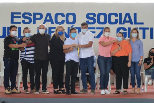 Na área da cultura, Wilson Lima entregou instrumentos musicais do projeto “Dó-Si Música” (Doce Música), da Associação Mãos Solidárias, que foi contemplado no edital Prêmio Equipa Cultura 2021, promovido pelo Governo do Estado, por meio da Secretaria de Cultura e Economia Criativa.