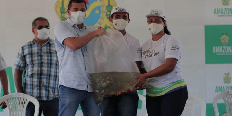 Na ocasião, o governador também entregou 15 mil alevinos de tambaqui, aeradores e kits de análise de água para piscicultores com propriedades na comunidade.