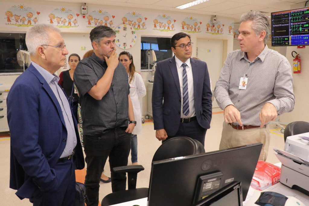 Acompanhado pelo secretário de saúde do Amazonas, Rodrigo Tobias, e o médico cardiologista e diretor clínico do Hospital Francisca Mendes, Mariano Terrazas, o governador conheceu o serviço Nacional de Cardiologia Pediátrica e reuniu com a diretoria do hospital.