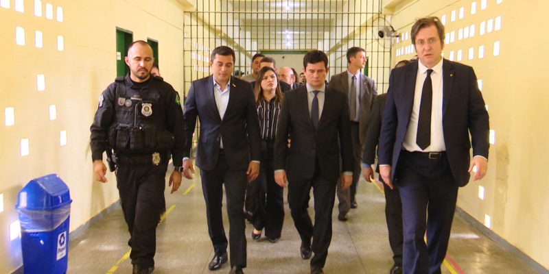 Wilson Lima mostrou ao ministro parte da estrutura do Instituto Penal Antônio Trindade (IPAT), do Centro de Detenção Provisória Masculino II e do Complexo Penitenciário Anísio Jobim (Compaj), onde Moro participou da inauguração de uma panificadora.