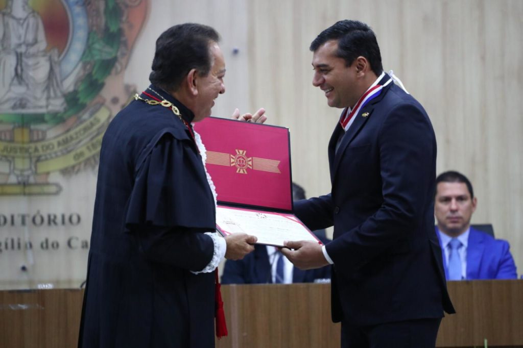 “Eu me sinto muito honrado por estar recebendo essa honraria aqui do Tribunal de Justiça do Amazonas, e aqui vale ressaltar que o trabalho que a gente vem desempenhando não é um trabalho só meu. Comigo tem a minha família, tem a minha esposa, os meus filhos, a minha equipe, as pessoas que aceitaram esse desafio de conduzir os destinos dos brasileiros que moram aqui no estado do Amazonas”, disse Wilson Lima.