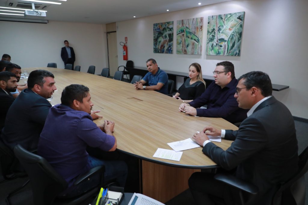 O governador Wilson Lima recebeu, nesta terça-feira (04/02), em reunião na sede do Governo do Amazonas, no bairro Compensa II, zona oeste da capital, os representantes das cooperativas de motoristas de aplicativo. Eles reivindicam redução no preço do combustível e pediram apoio do Governo do Estado. Wilson Lima explicou aos motoristas que já está discutindo com os demais governadores como viabilizar a redução no preço dos combustíveis e que essa é uma pauta nacional, que envolve diversos atores no processo. Durante o encontro, foi discutida também a possibilidade de criação de uma linha de financiamento na Agência de Fomento do Estado do Amazonas (Afeam) específica para acesso da categoria.